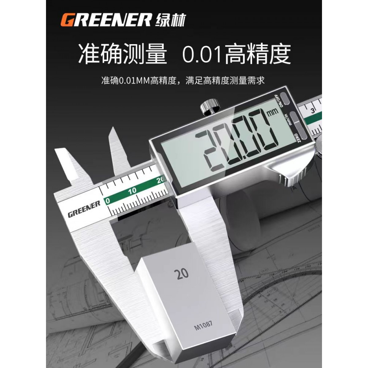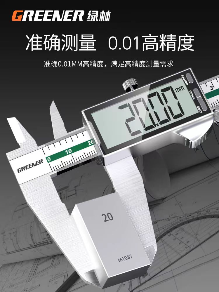 商品名称:绿林【全面数显大屏】不锈钢数显卡尺 0-200mm 单位:把