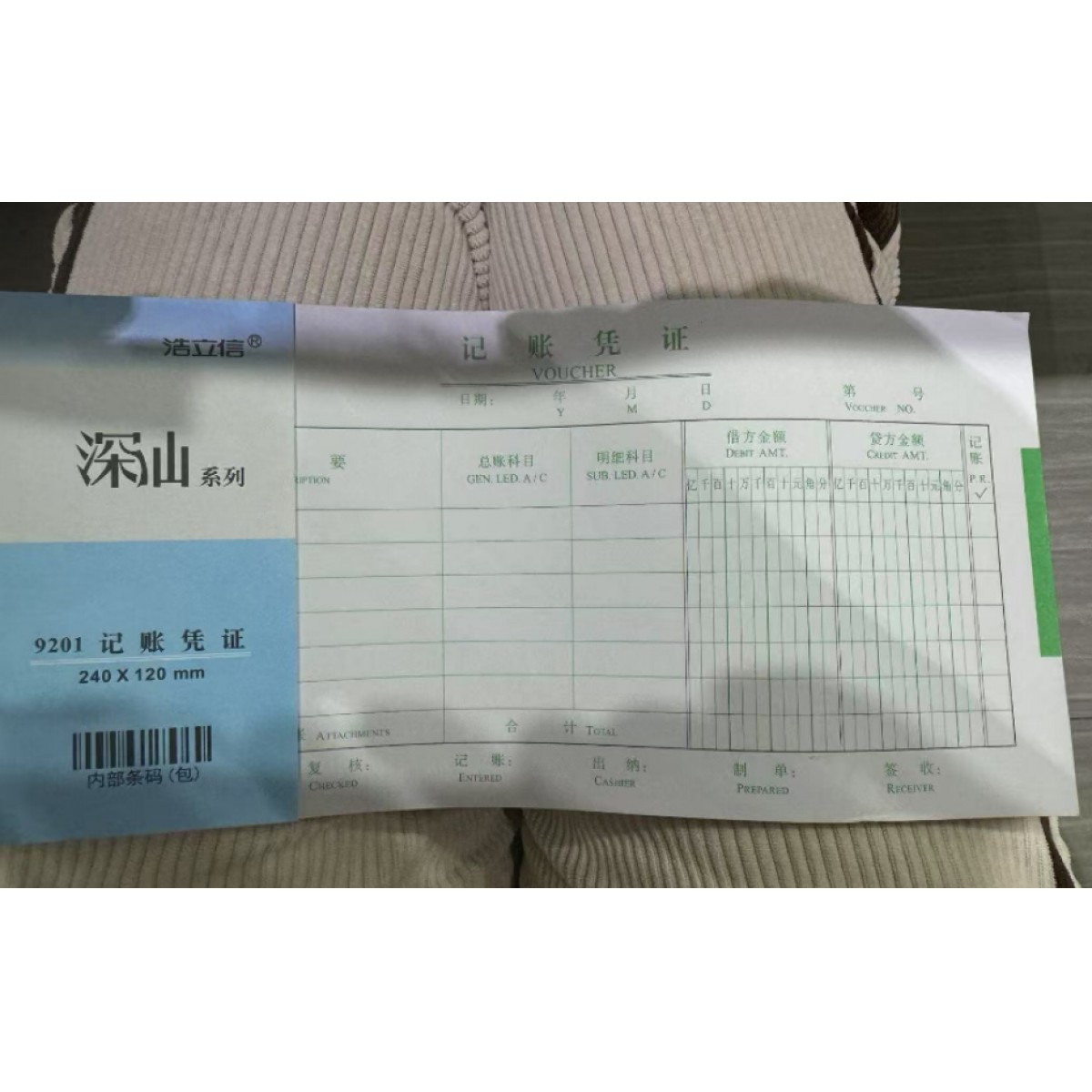 商品名称:浩立信9201记帐凭证240*120mm 10本/包 单位:本