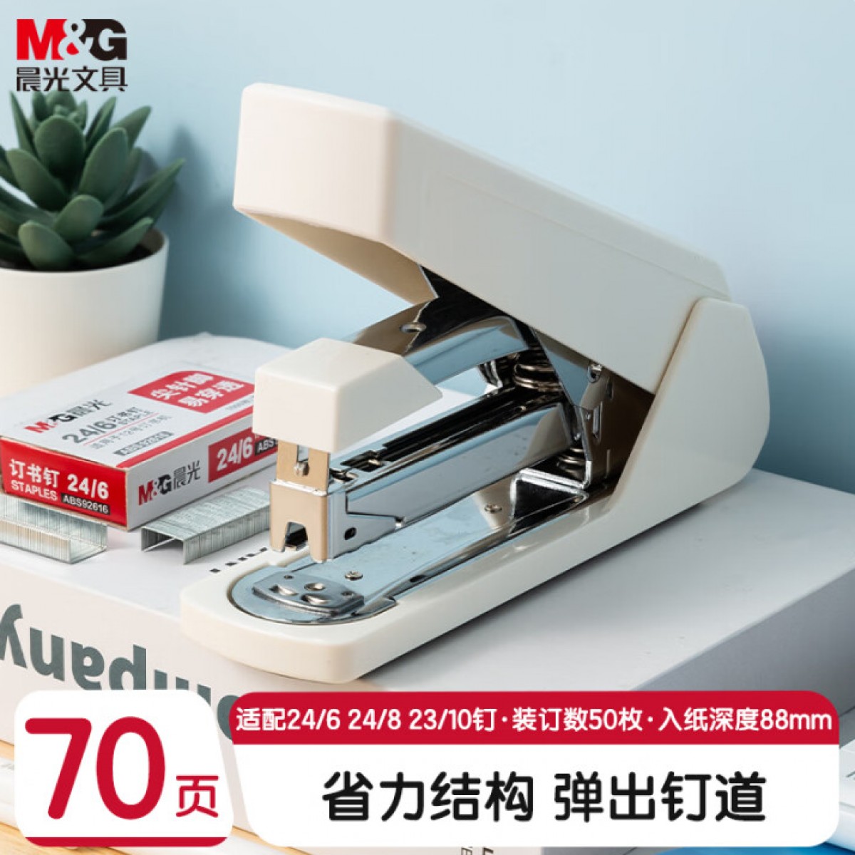 商品名称:晨光ABS916K6订书机 省力厚层70页 单位:个