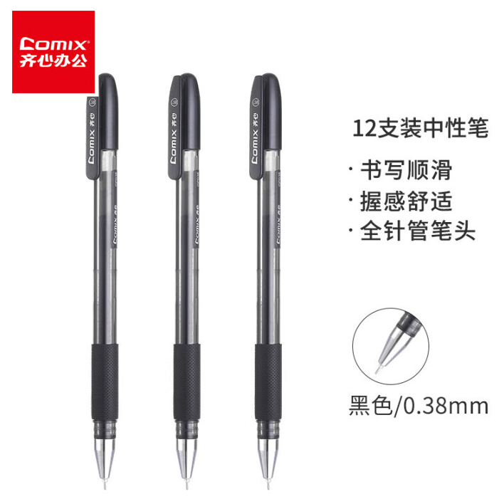 商品名称:齐心GP038全针管细字中性笔0.38mm黑色 12支/盒 单位:盒