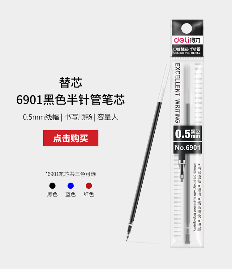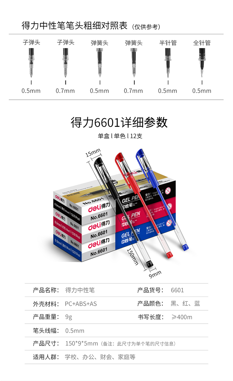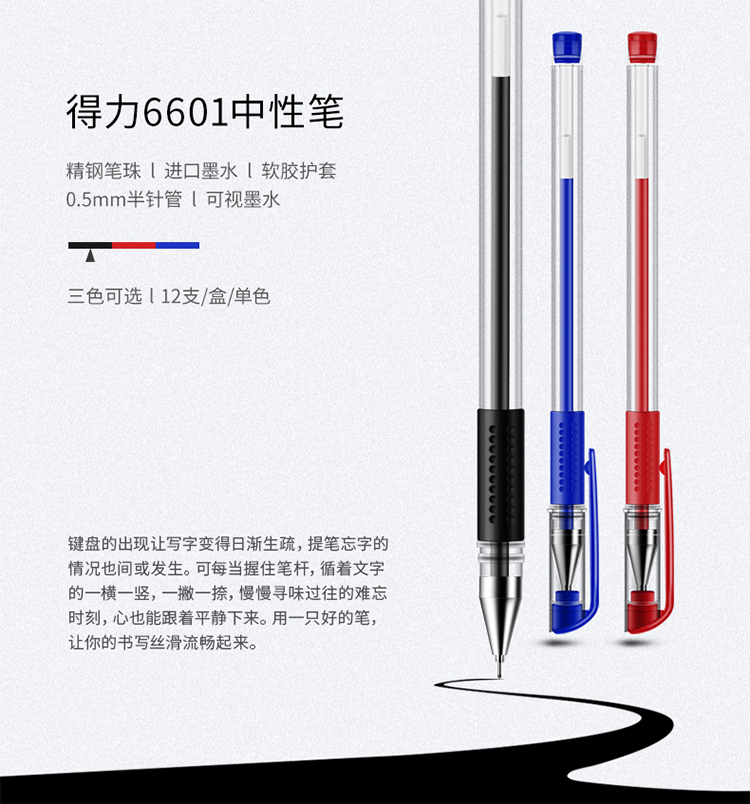 商品名称:得力(deli)6601 半针管黑色中性笔水笔签字笔 0.5mm 12支/盒