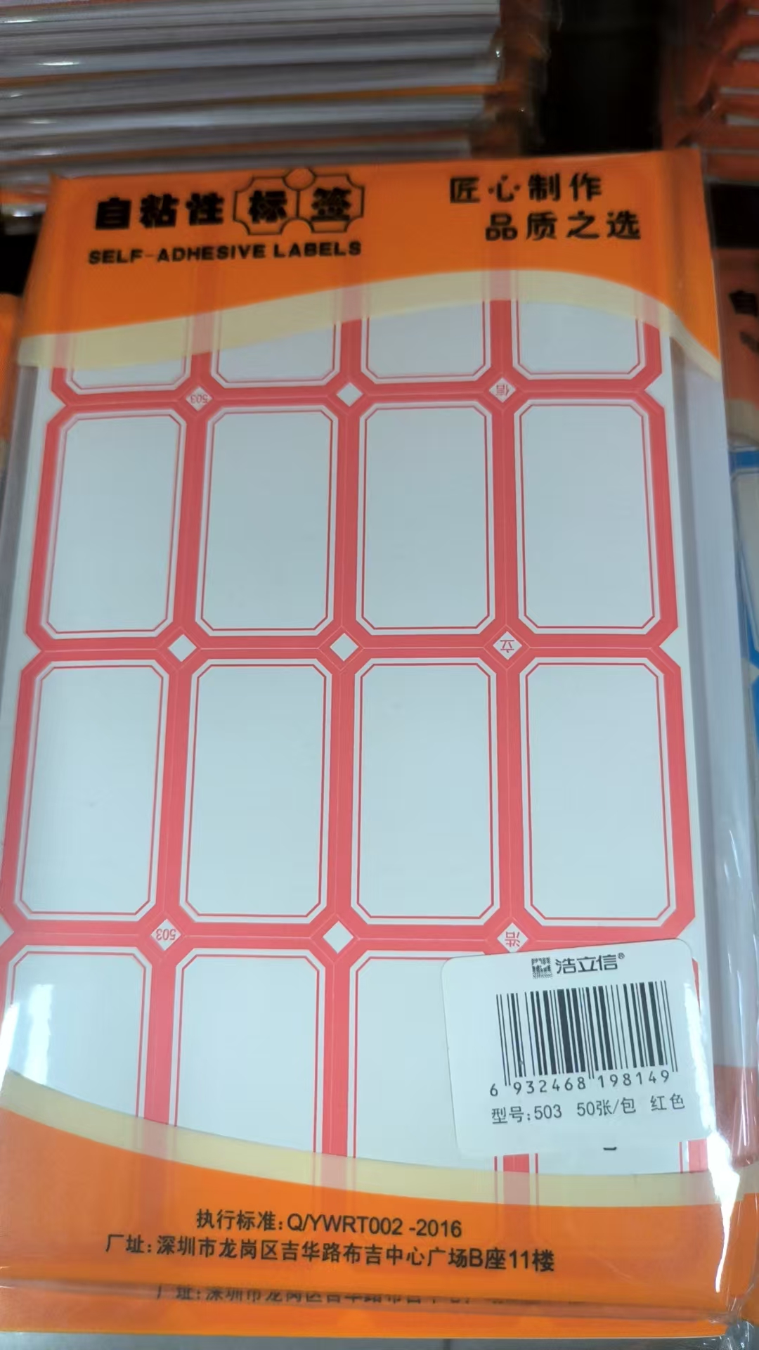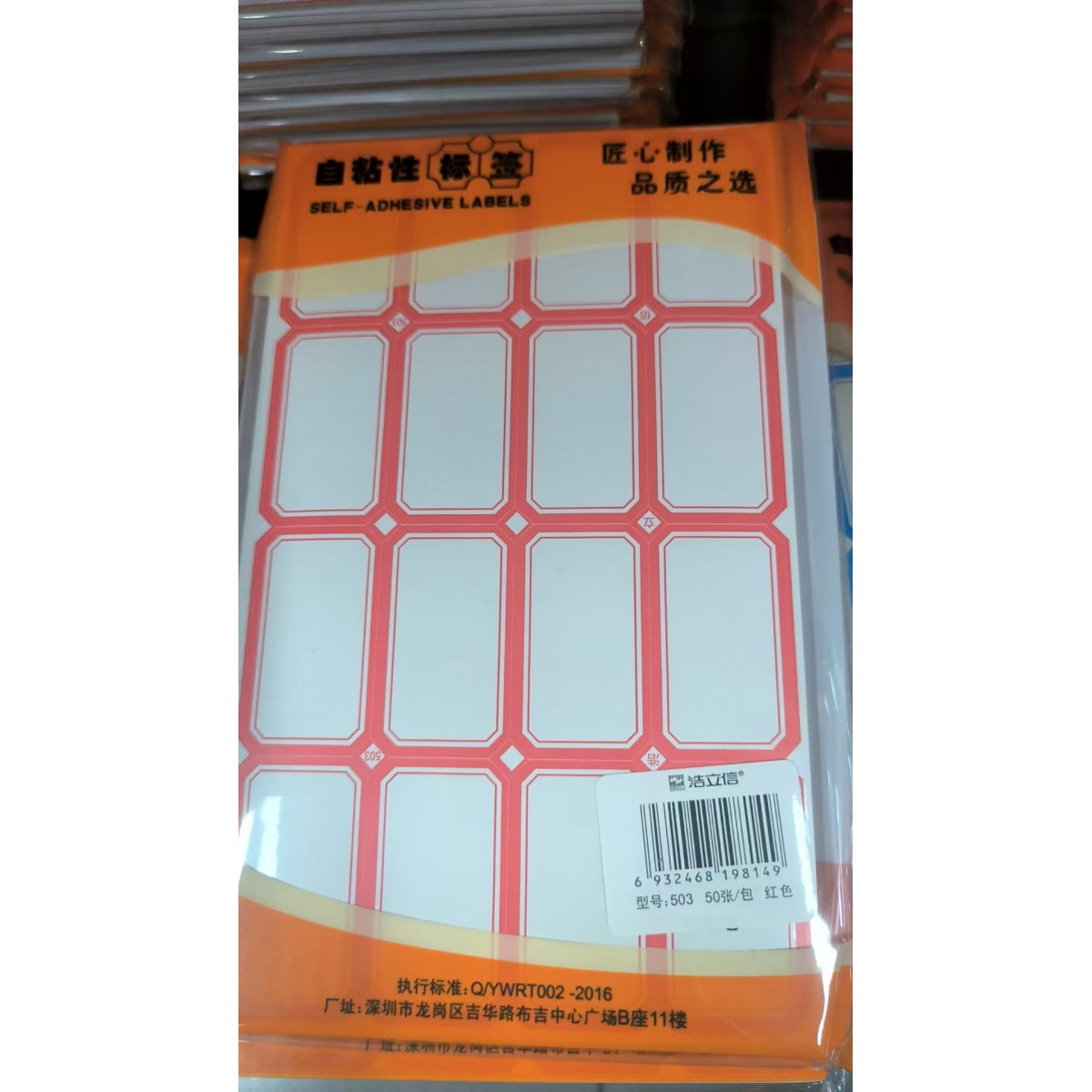 商品名称:浩立信503不干胶粘纸贴 28*48mm红色 16枚/张 50张/包 单位:包