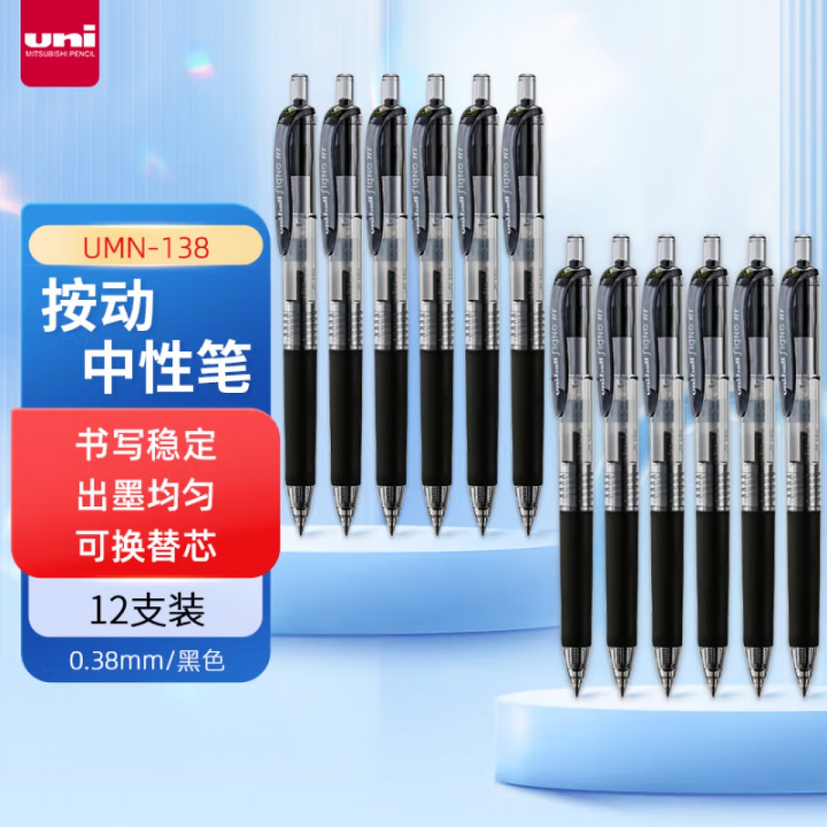 商品名称:三菱UMN-138签字笔 0.38mm黑色 12支/盒 单位:盒