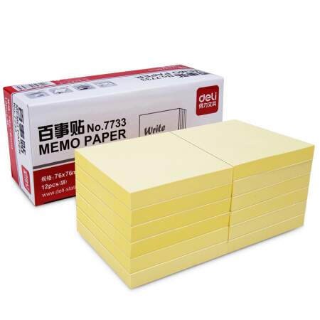 得力7733 单本76×76mm便签纸/便签本/便利贴/百事贴/易事贴/N次贴