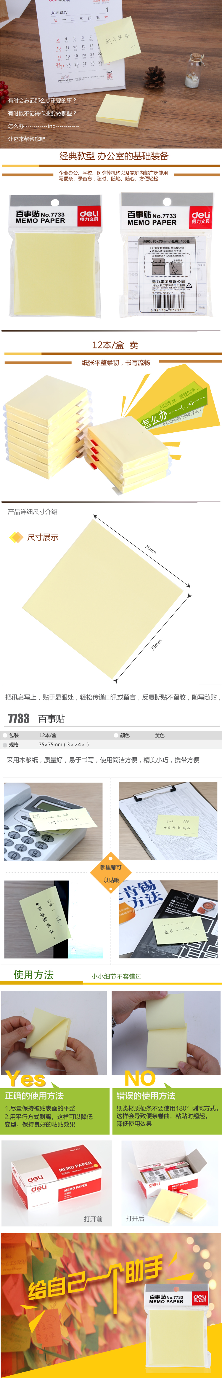 商品名称:得力7733 单本76×76mm便签纸/便签本/便利贴/百事贴/易事贴/N次贴