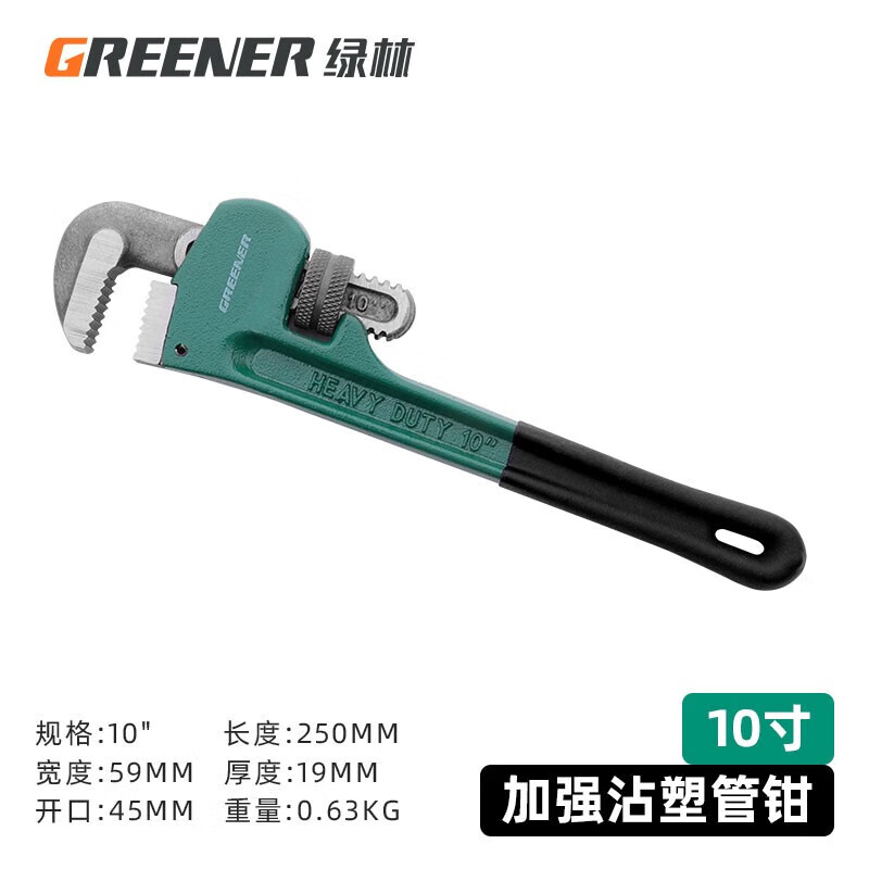 商品名称:绿林加强款沾塑管钳10寸 单位:把