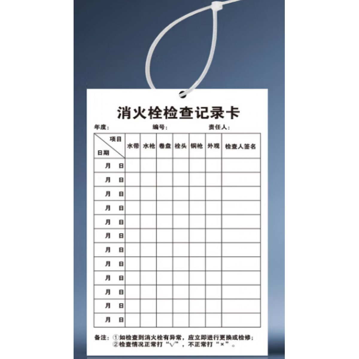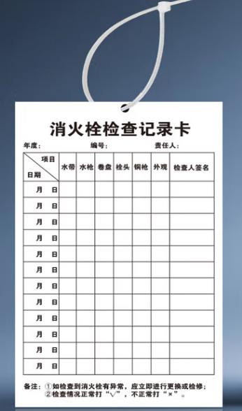 商品名称:消火栓检查记录卡 9x13cm 单位:套