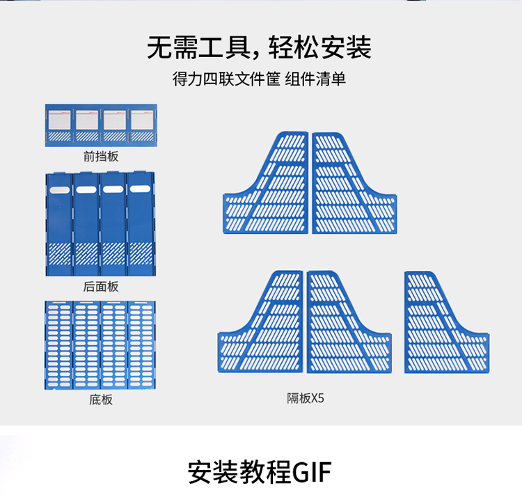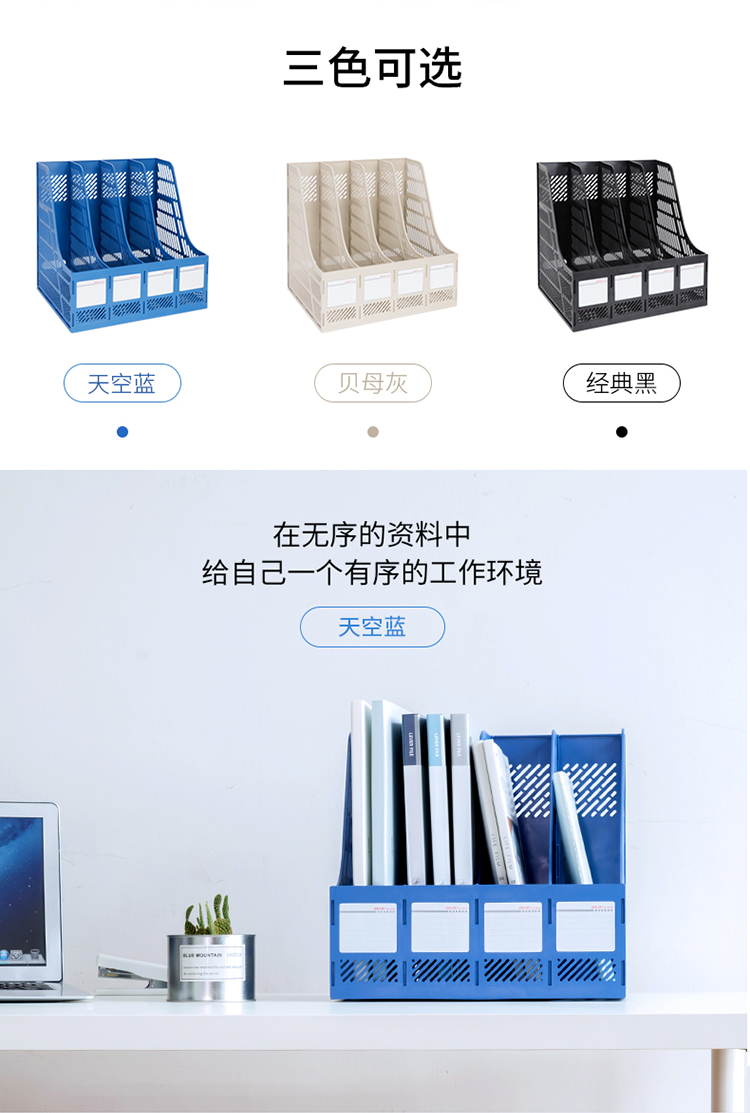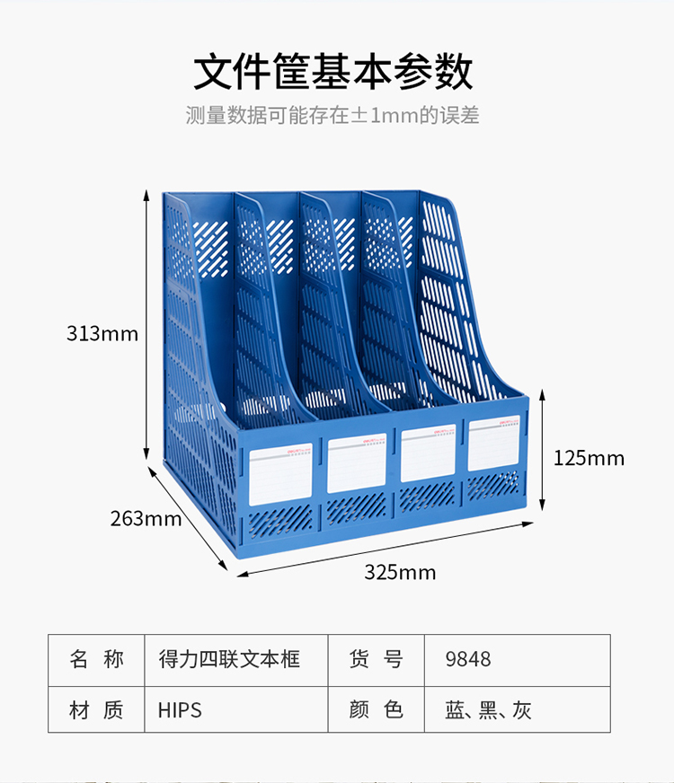 商品名称:得力9848四栏镂空文件筐(灰色)