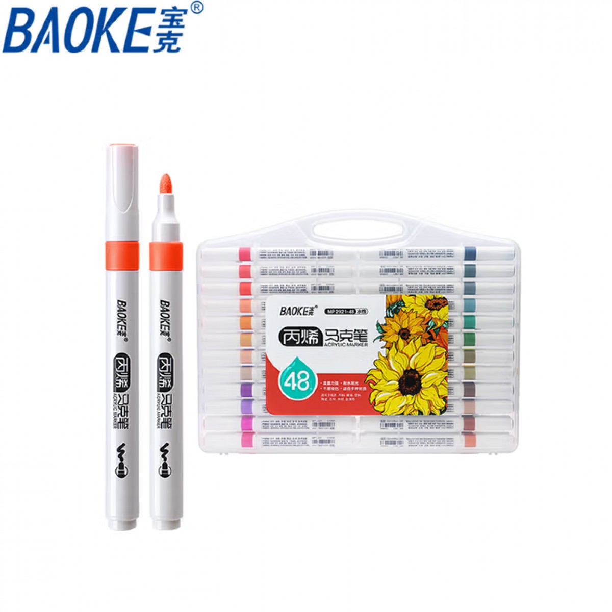 商品名称:宝克MP2921-48 48色水性丙烯马克笔 单位:盒