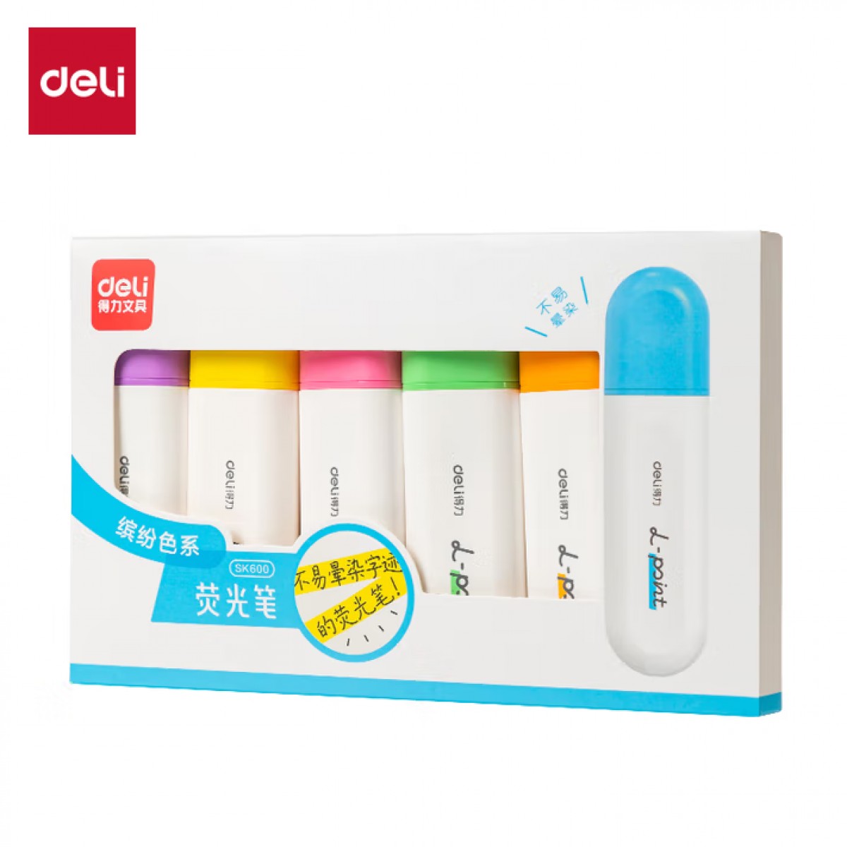 商品名称:得力SK600抗晕染荧光笔 6支/盒 单位:盒