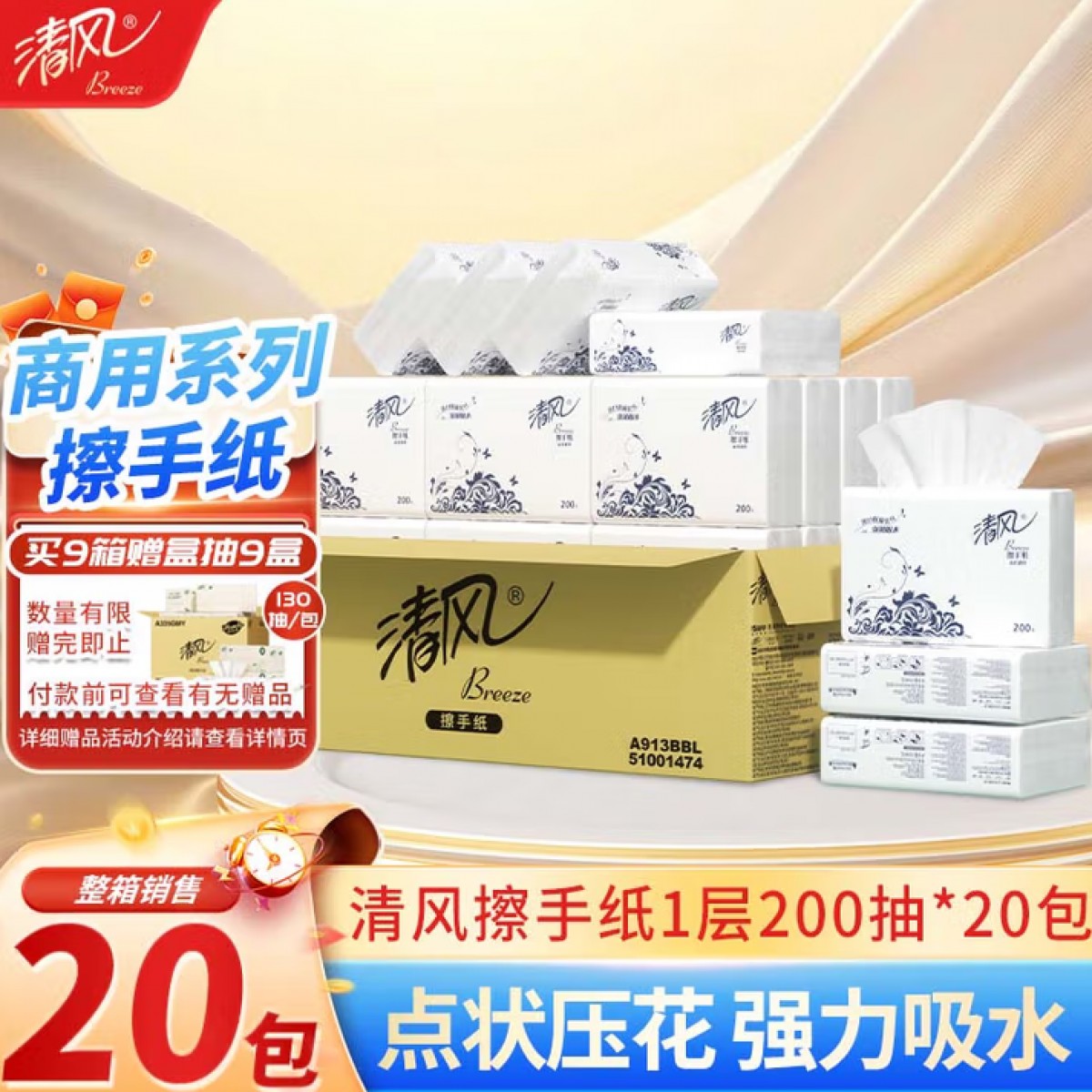 商品名称:清风A913BBL擦手纸 200抽*20包 单位:箱