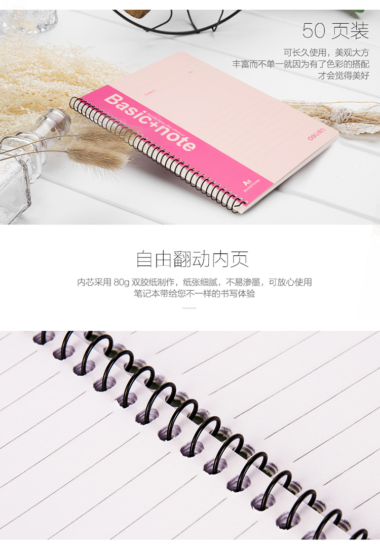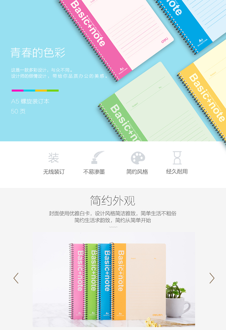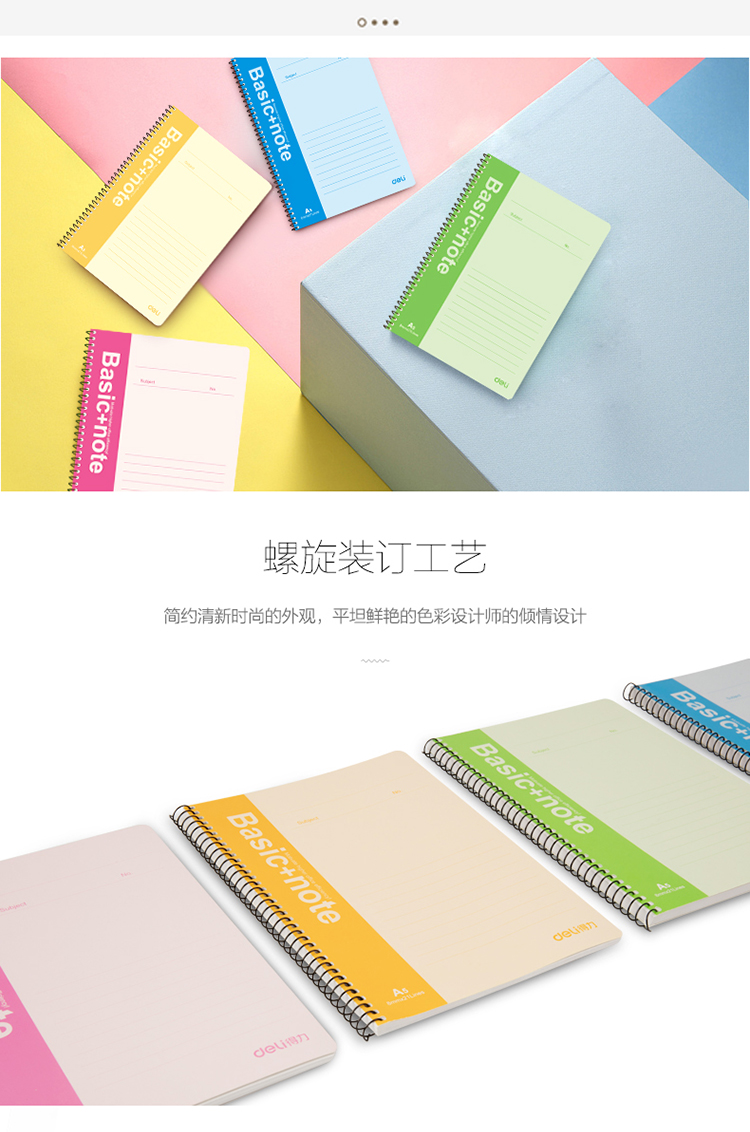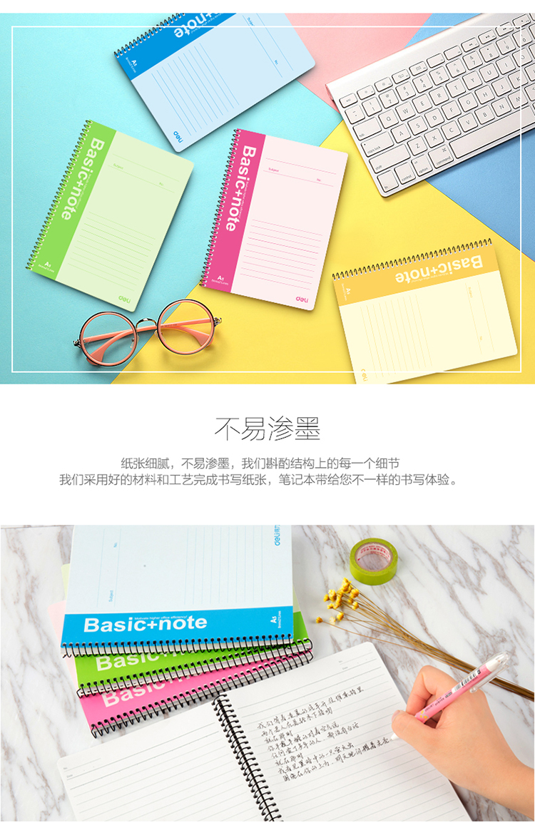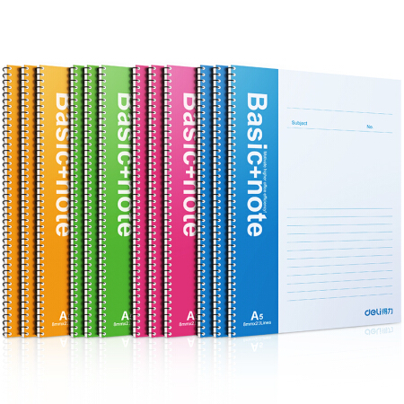 得力7683办公螺旋本(混色)A5 60张 10本/包 单位:包