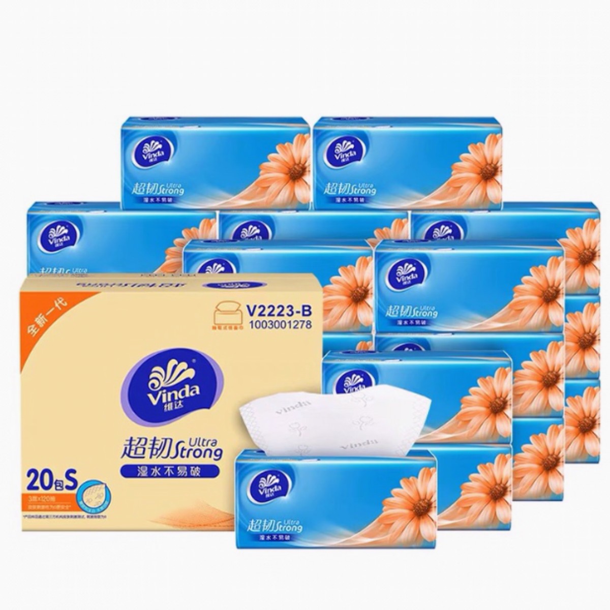 商品名称:维达V2223B抽纸三层120抽S码 10包/提 6提/箱 单位:提