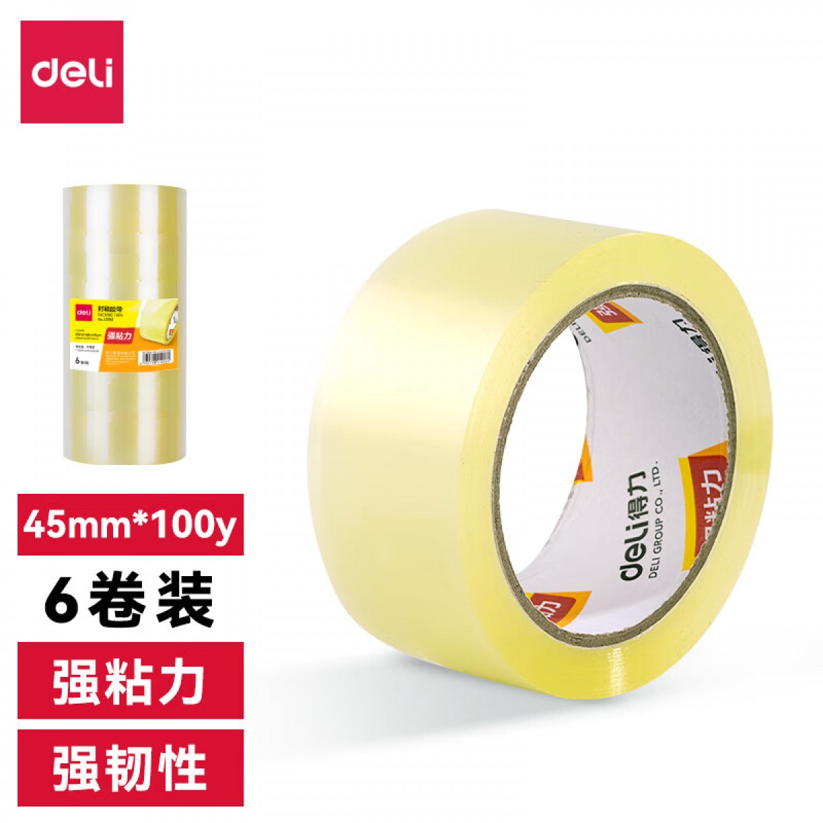得力JD151封箱胶带45mm*100y*45μm(透明黄)(6卷/筒) 单位:筒