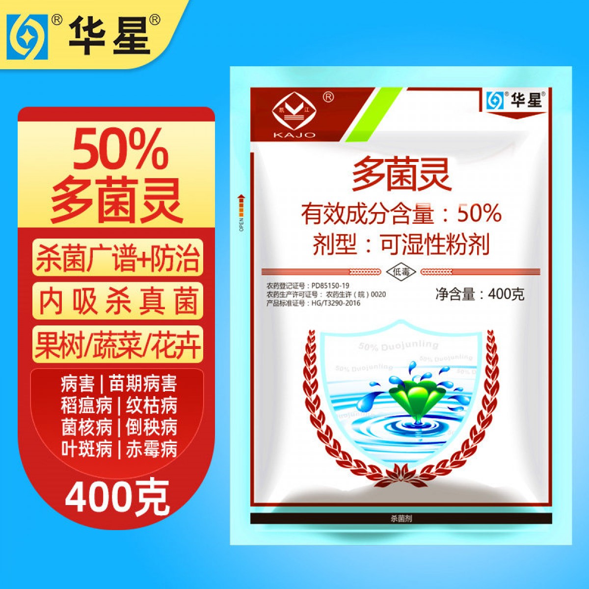华星50%多菌灵杀菌剂粉剂 400g/包 单位:包