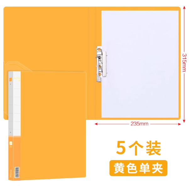 商品名称:创易黄色A4单强力夹文件夹 5个/组 单位:组
