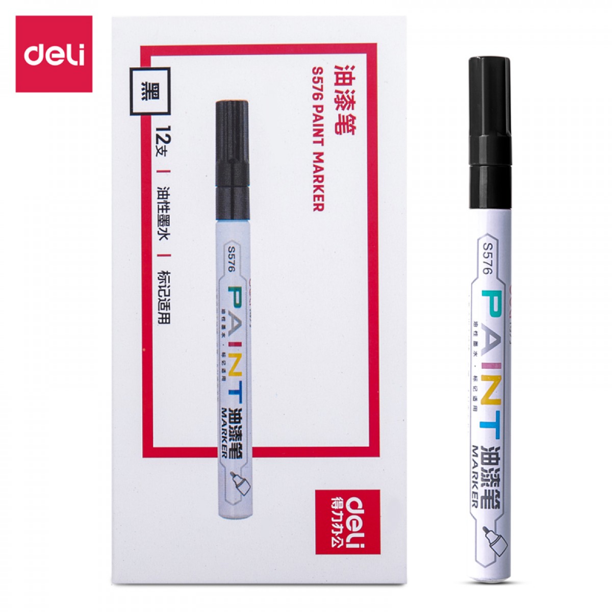商品名称:得力S576油漆笔黑色 12支/盒 单位:盒
