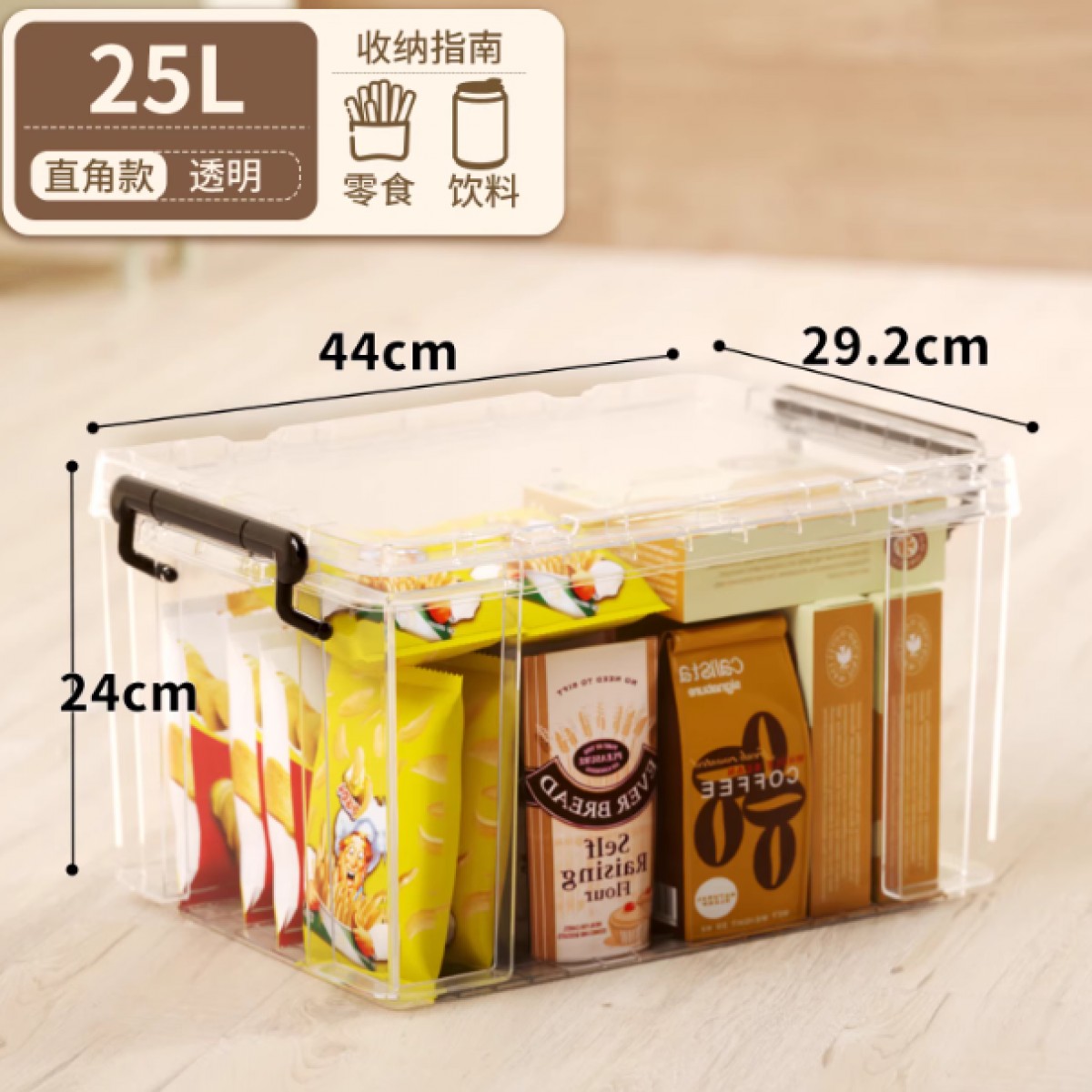 商品名称:巧纳小精灵直角加厚透明收纳箱 25升无轮 44*29.2*24cm 单位:个