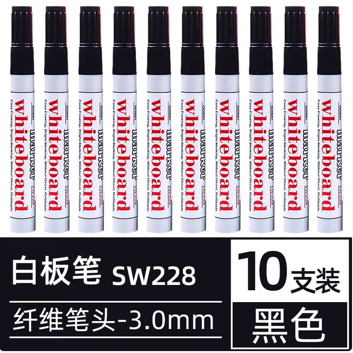 商品名称:中柏SW228可擦白板笔 黑色 10支/盒 单位:盒