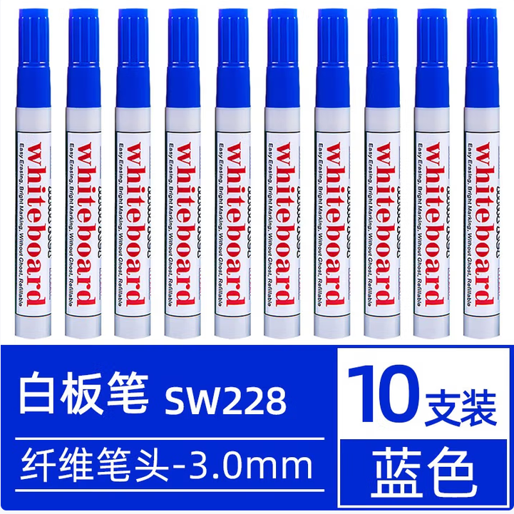 商品名称:中柏SW228可擦白板笔 蓝色 10支/盒 单位:盒