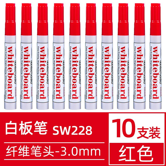 中柏SW228可擦白板笔 红色 10支/盒 单位:盒