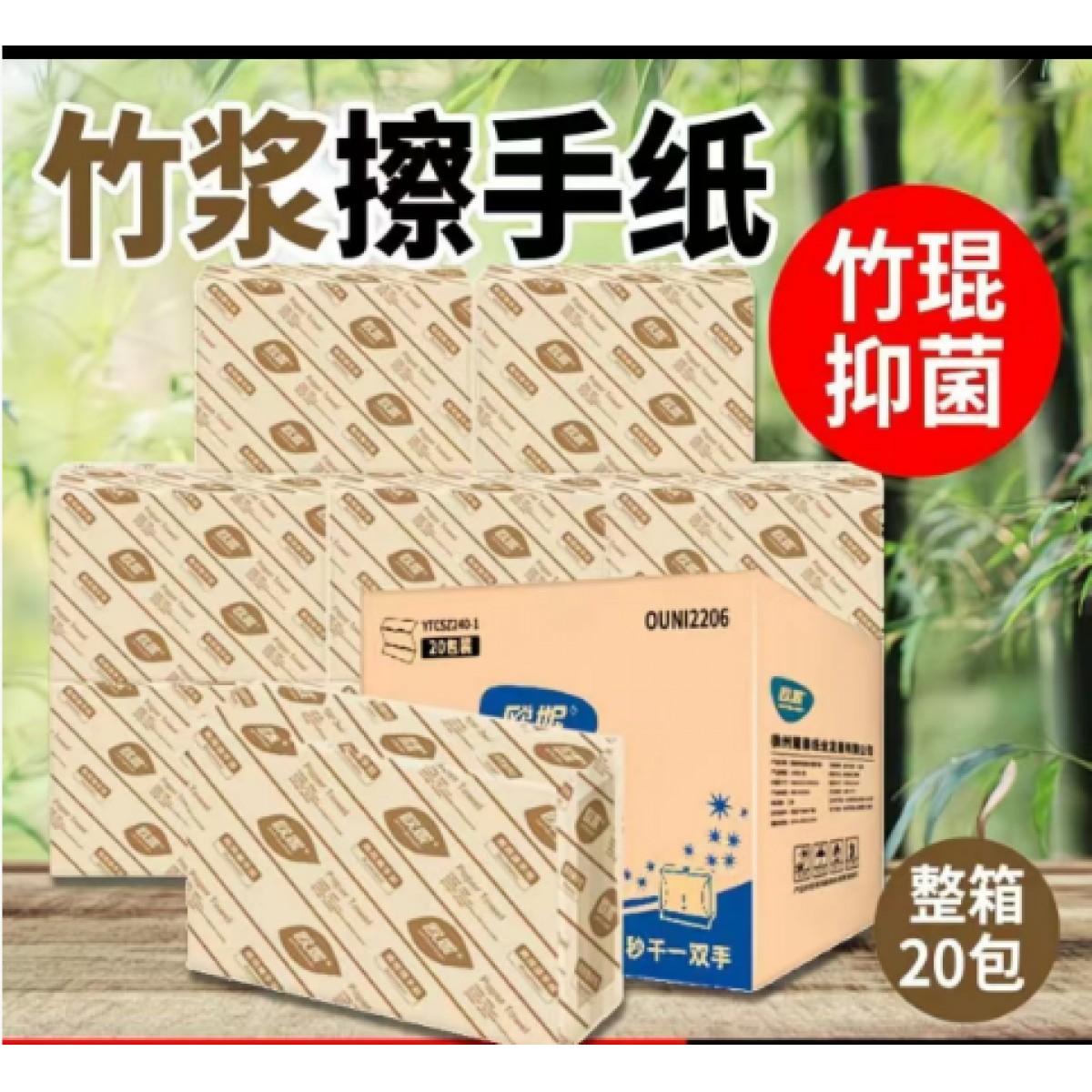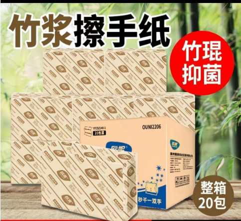 商品名称:欧妮竹浆双层擦手纸200抽/包 20包/箱 单位:箱
