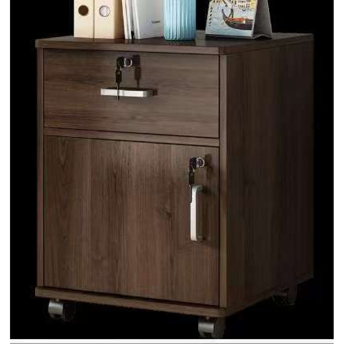 文件柜 一抽一门款带锁带滑轮 黑橡木色 单位:个