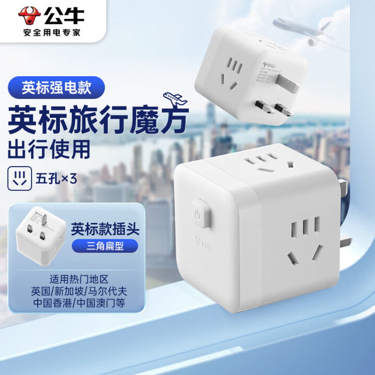 公牛GNV-M10EW 3位魔方英标插座 白色 单位:个