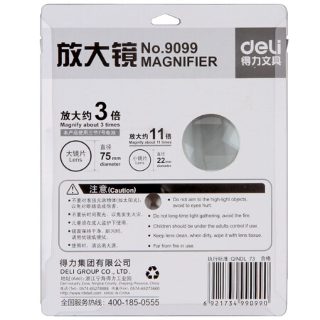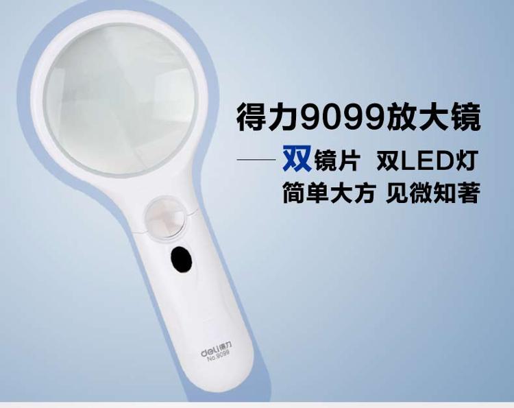 商品名称:得力(deli)9099 得力(deli)9099 带LED灯3倍高清阅读放大镜 直径75mm 白色