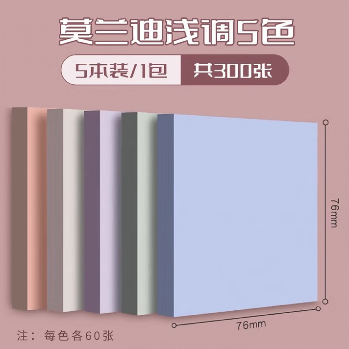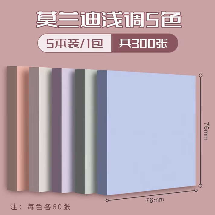 商品名称:得力莫兰迪浅调5色便利贴 300张/包 单位:包
