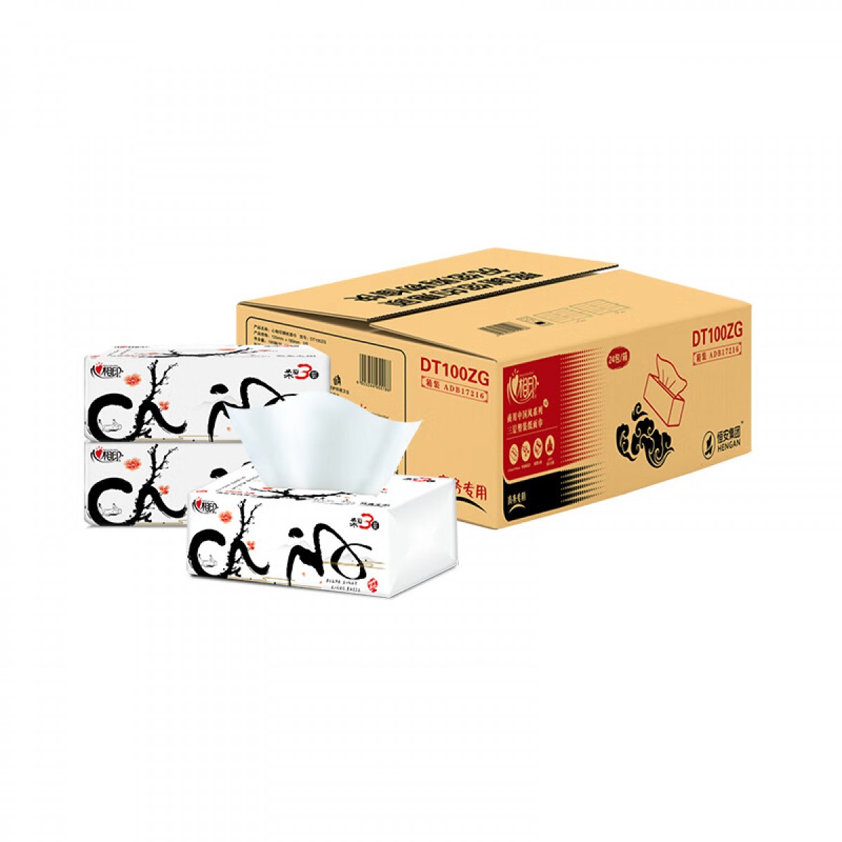 心相印DT100ZG中国风系列抽纸 S码3层100抽*24包/箱 单位:箱
