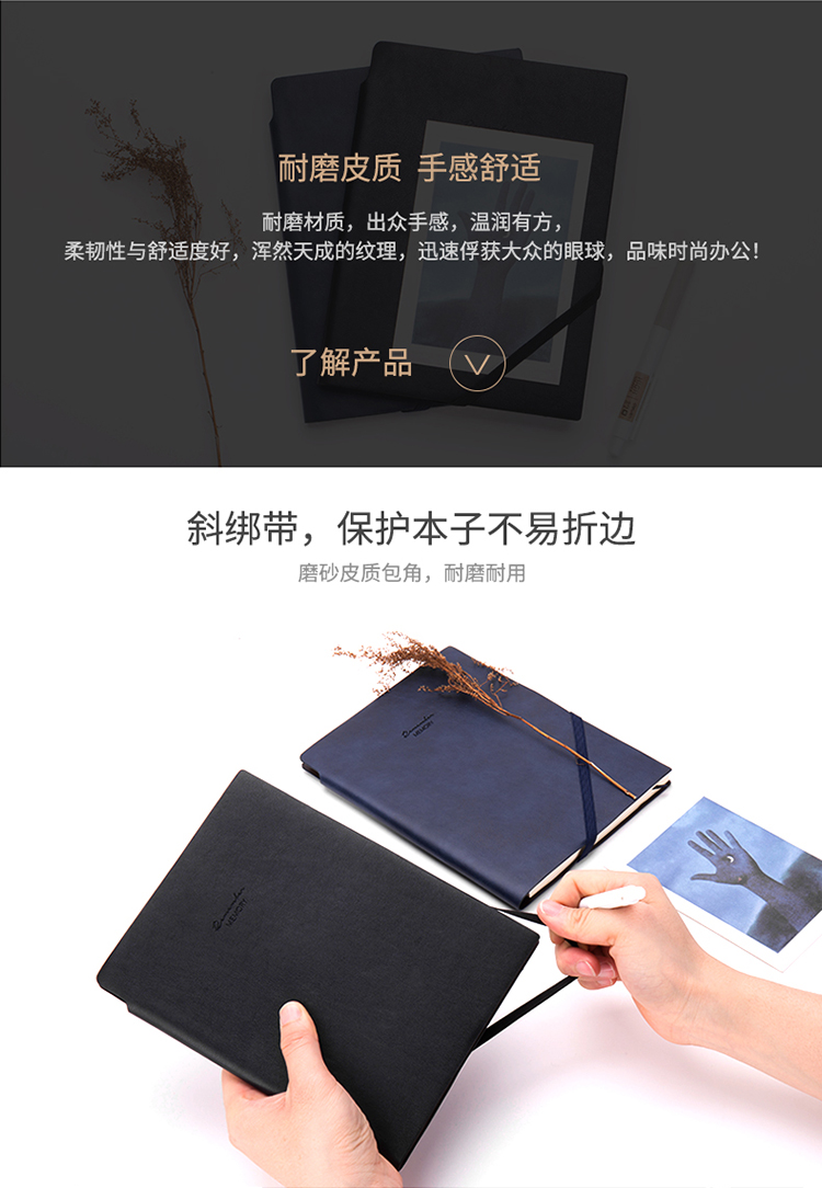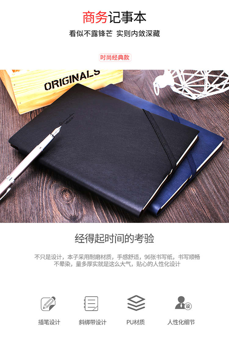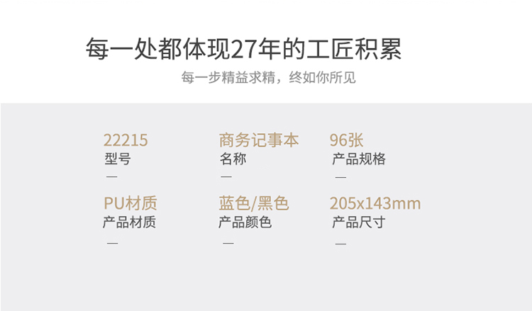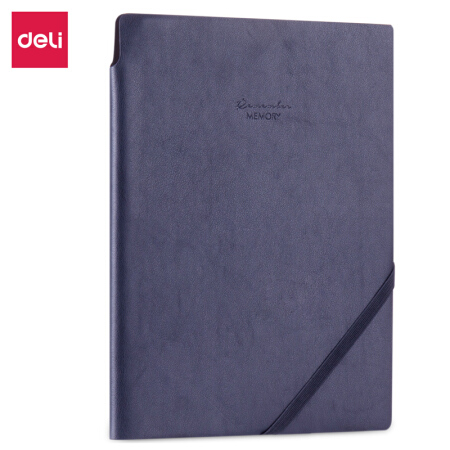 商品名称:得力22215 商务绑带皮面记事本 96页25K(蓝色)