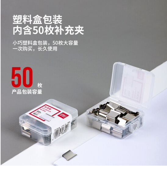 得力8592推夹器夹纸器补充夹 50枚/盒 银色