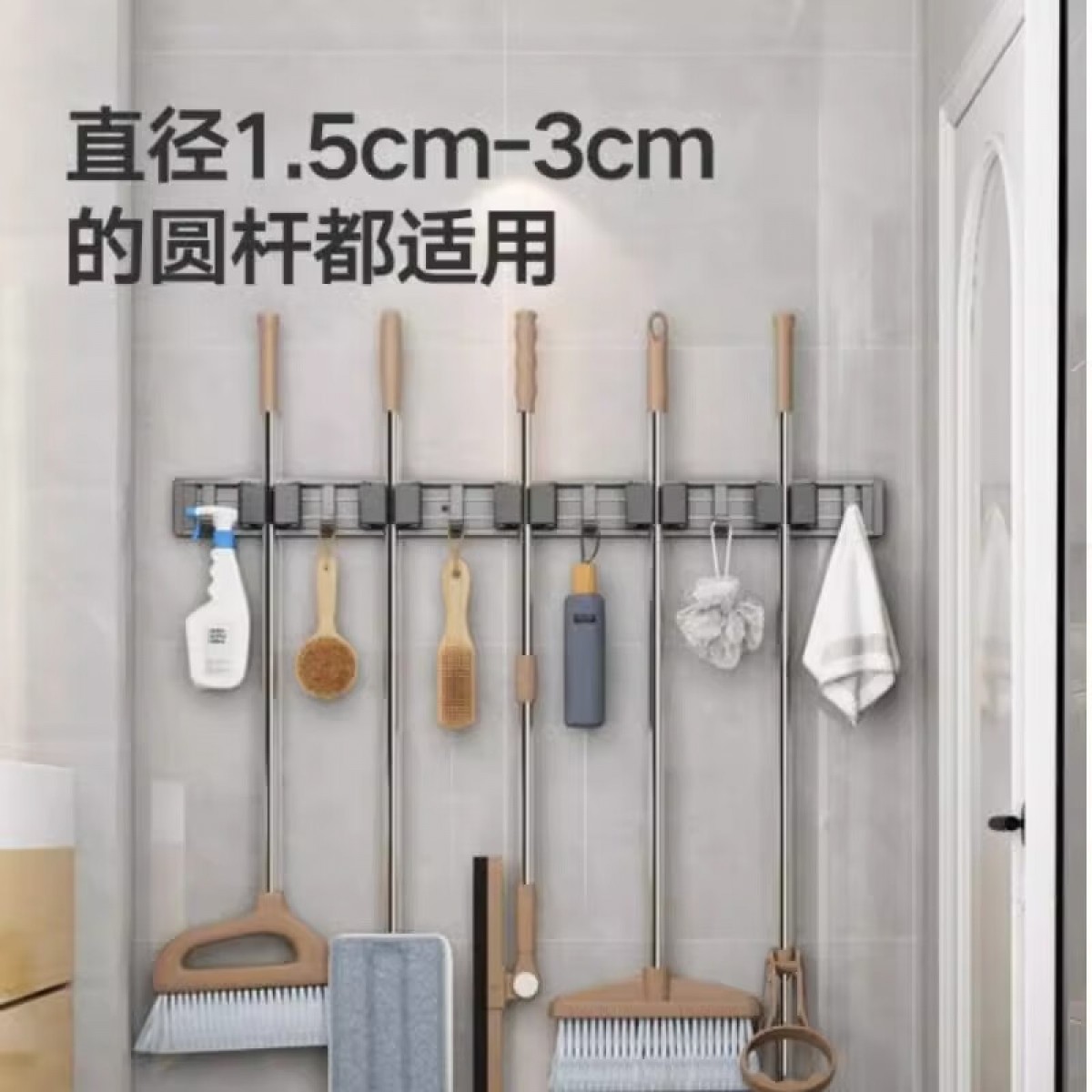 商品名称:百悍免打孔扫把挂架 枪灰太空铝升级款五夹六钩 单位:个