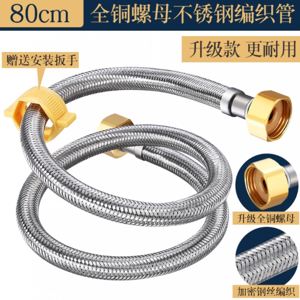 商品名称:华厦金牛304不锈钢软管 铜头80厘米 单位:根