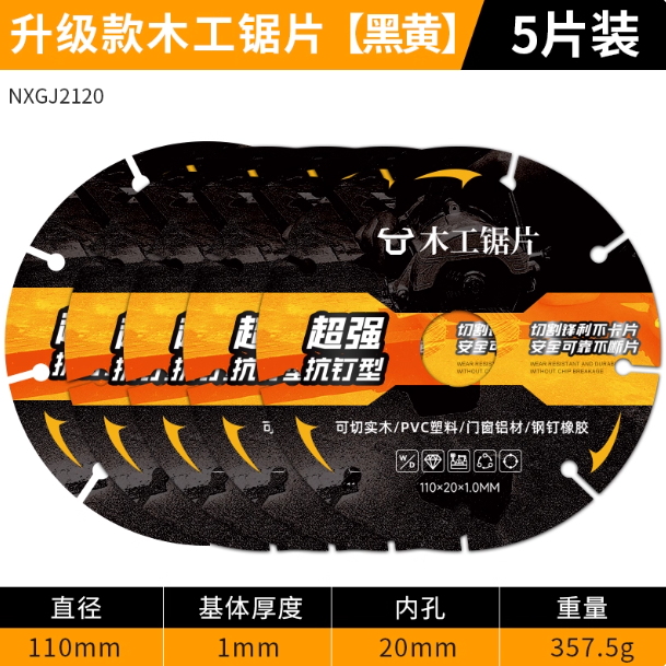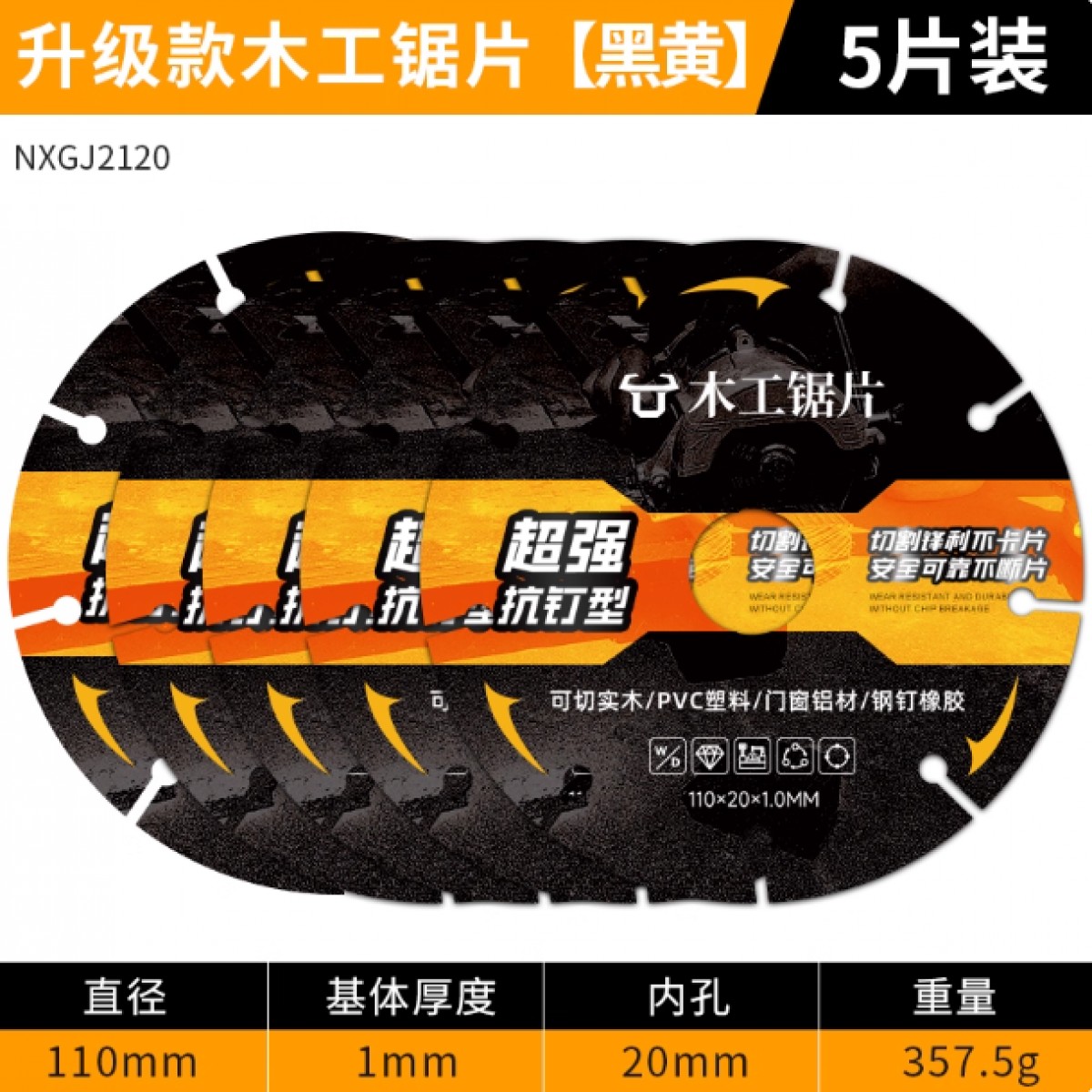 木工锯片(黑黄)5片装+安装垫圈 单位:套