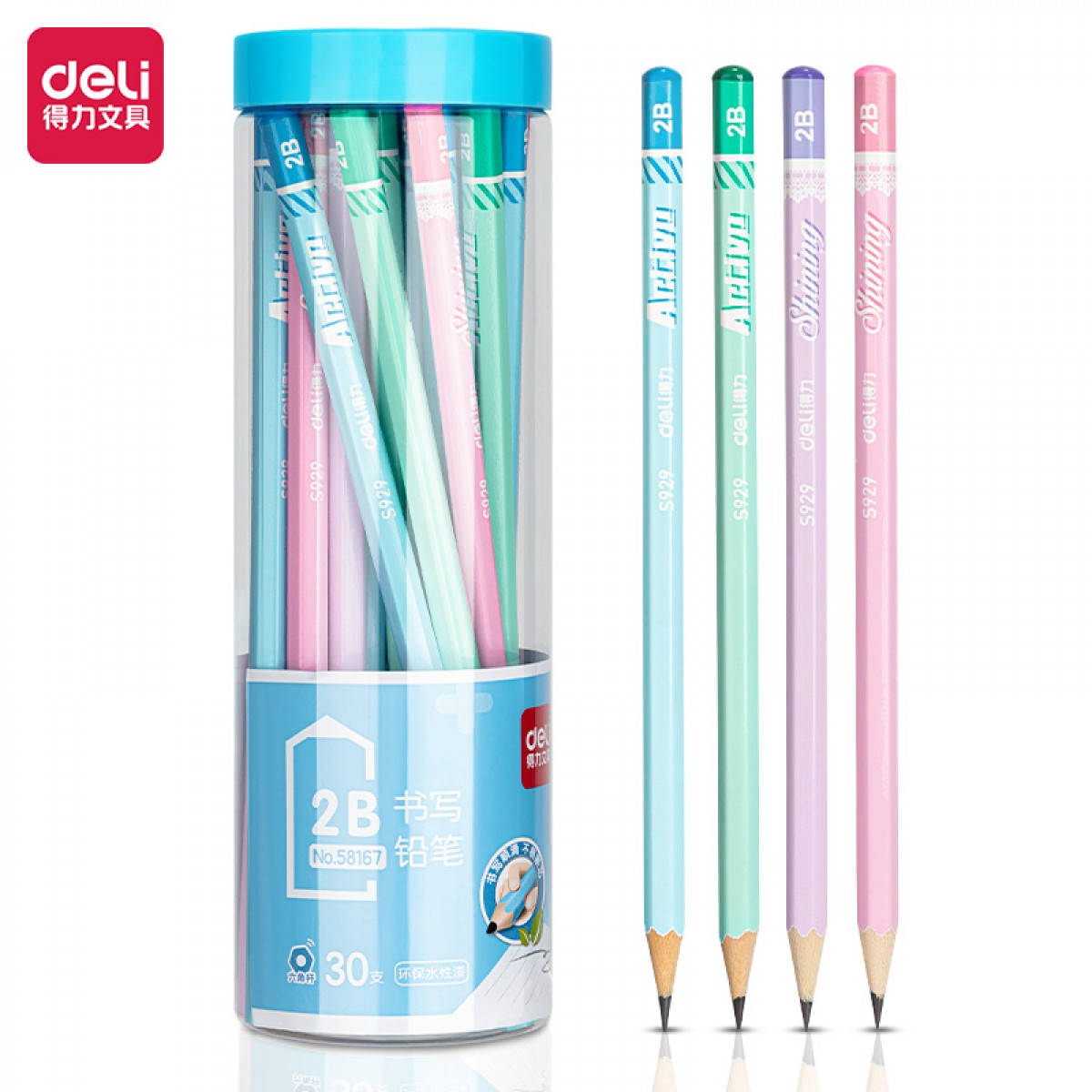商品名称:得力58167 2B铅笔(混) 30支/筒 单位:筒