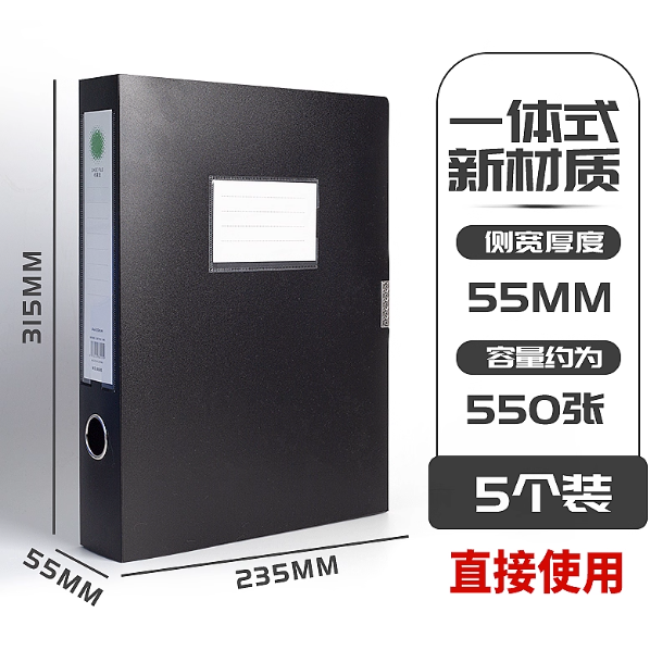 商品名称:恒利源黑色5.5cm一体式档案盒 新料加厚款 5个/组 单位:组