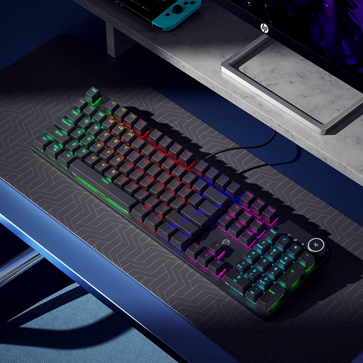 商品名称:惠普K10G有线机械键盘 黑色混光茶轴 单位:个