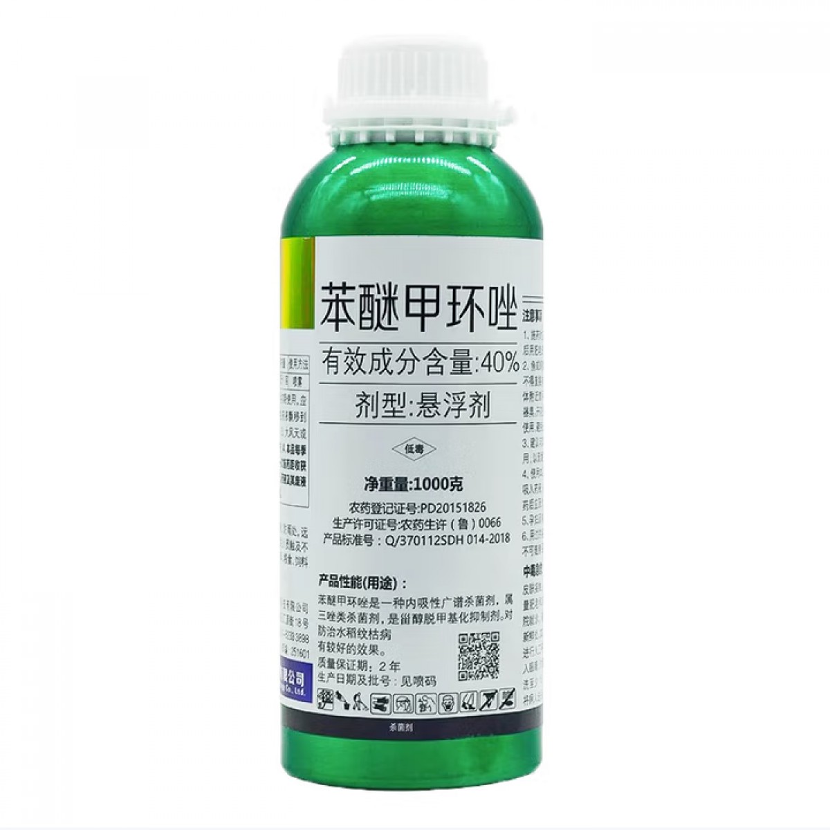 商品名称:东合生物40%苯醚甲环唑悬浮剂 1000g/瓶 单位:瓶