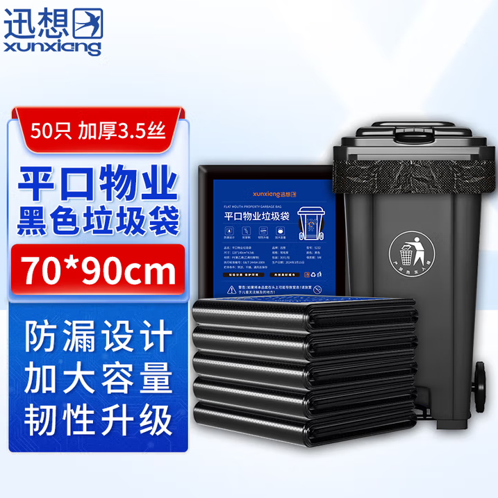 商品名称:迅想黑色垃圾袋 加厚型70*90cm 50个/包 单位:包