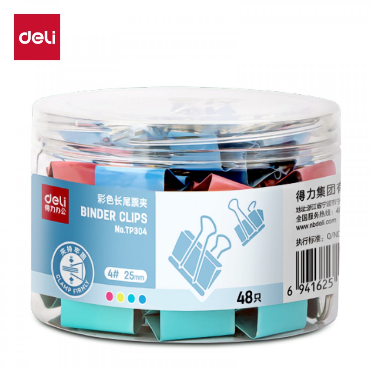 商品名称:得力TP304彩色长尾夹 4#25MM 48个/筒 单位:筒