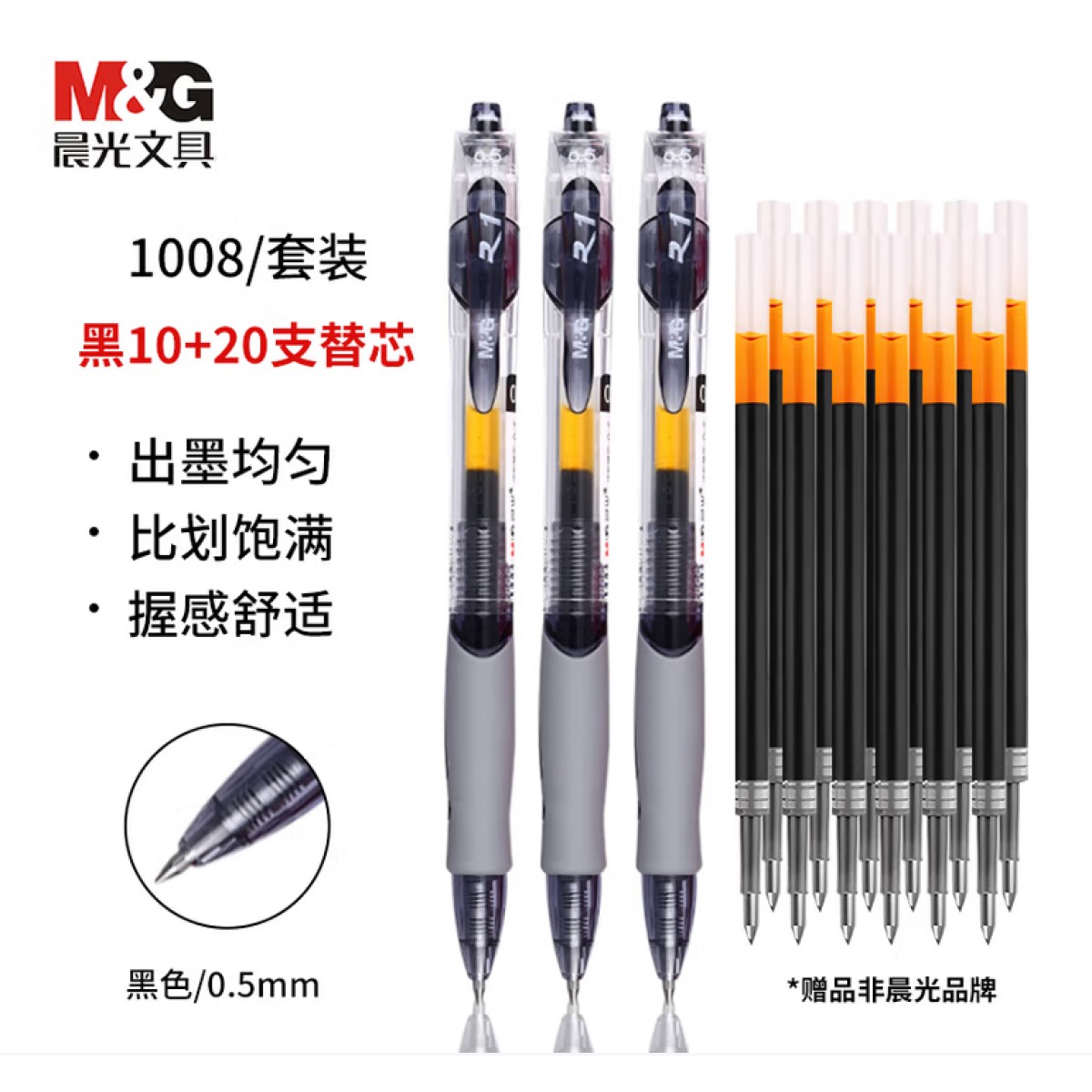 晨光GP1008按动中性笔套装 0.5mm黑色 10笔+20芯