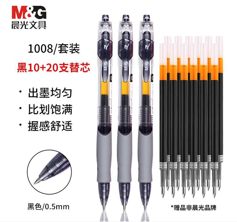 商品名称:晨光GP1008按动中性笔套装 0.5mm黑色 10笔+20芯 单位:组