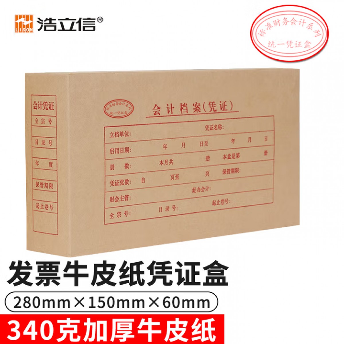商品名称:浩立信01030094牛皮纸凭证盒 28cm×15cm×6cm 10个/包 单位:包