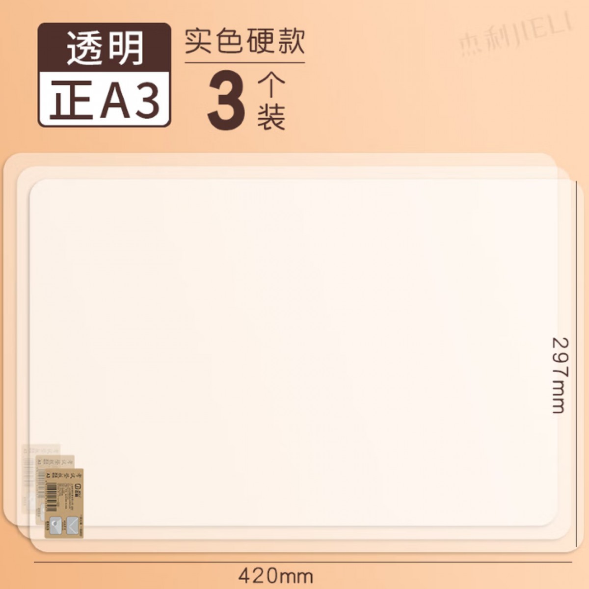 杰利A3透明硬款写字垫板 3张/包 单位:包
