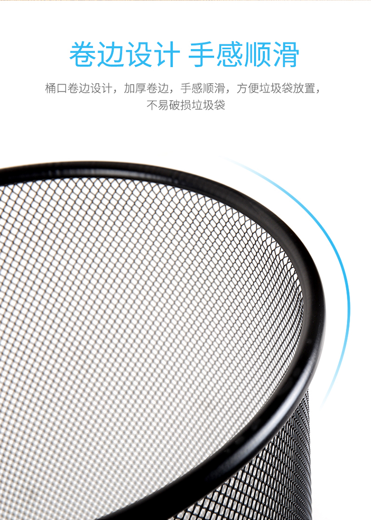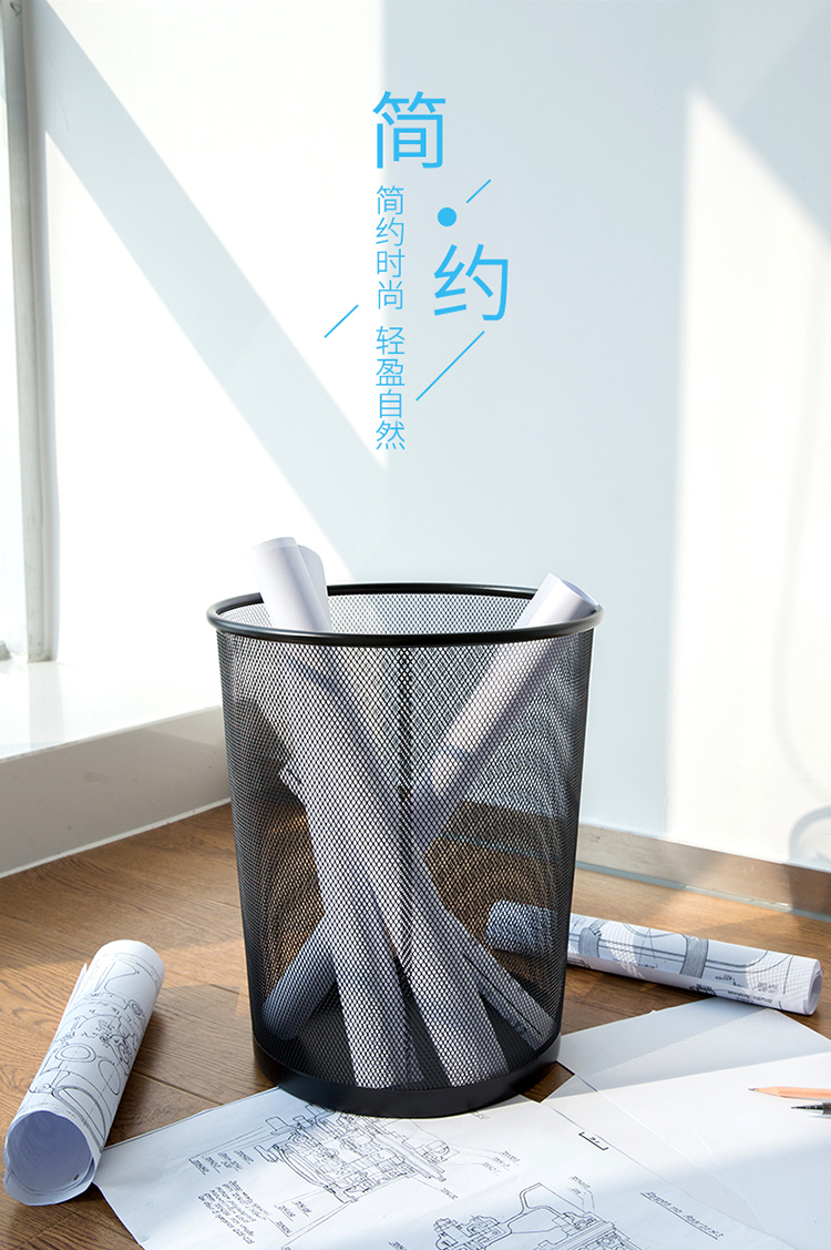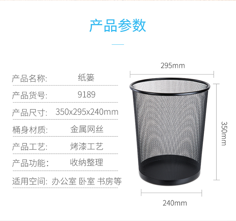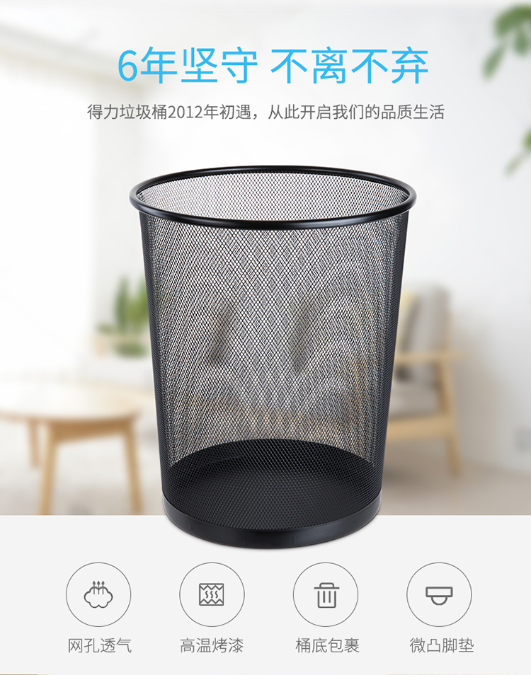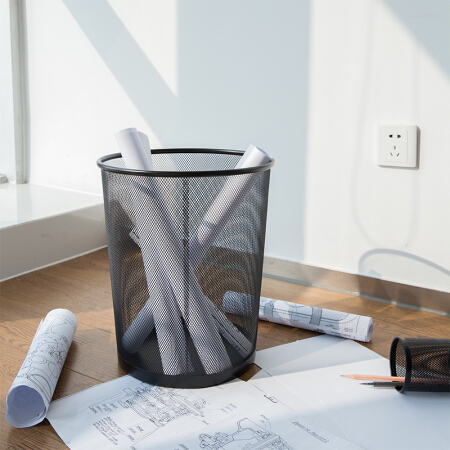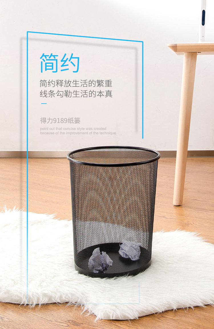 商品名称:得力(deli)φ29.5cm大号金属网状圆纸篓 办公家用垃圾桶 黑色9189