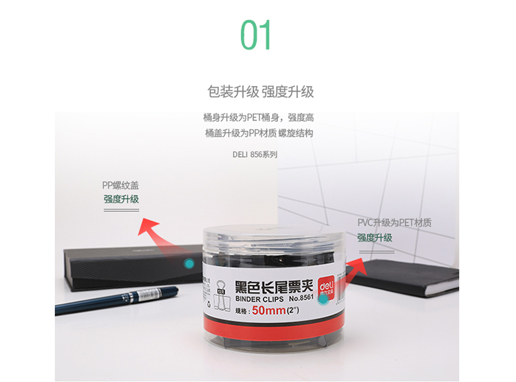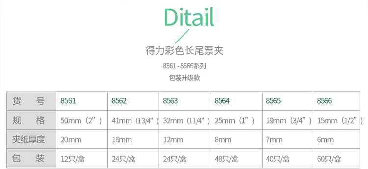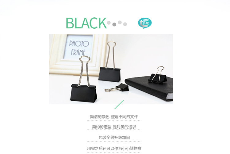 商品名称:得力8565 黑色长尾票夹 19mm小号 40只/筒 96筒/箱