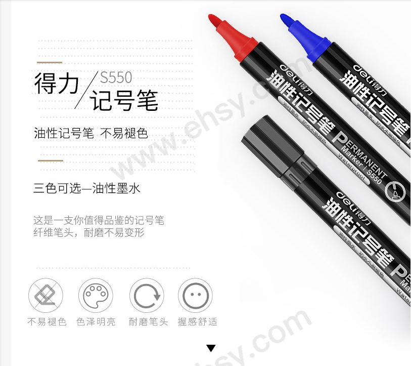 商品名称:得力S550记号笔(黑) 10支/盒 单位:支