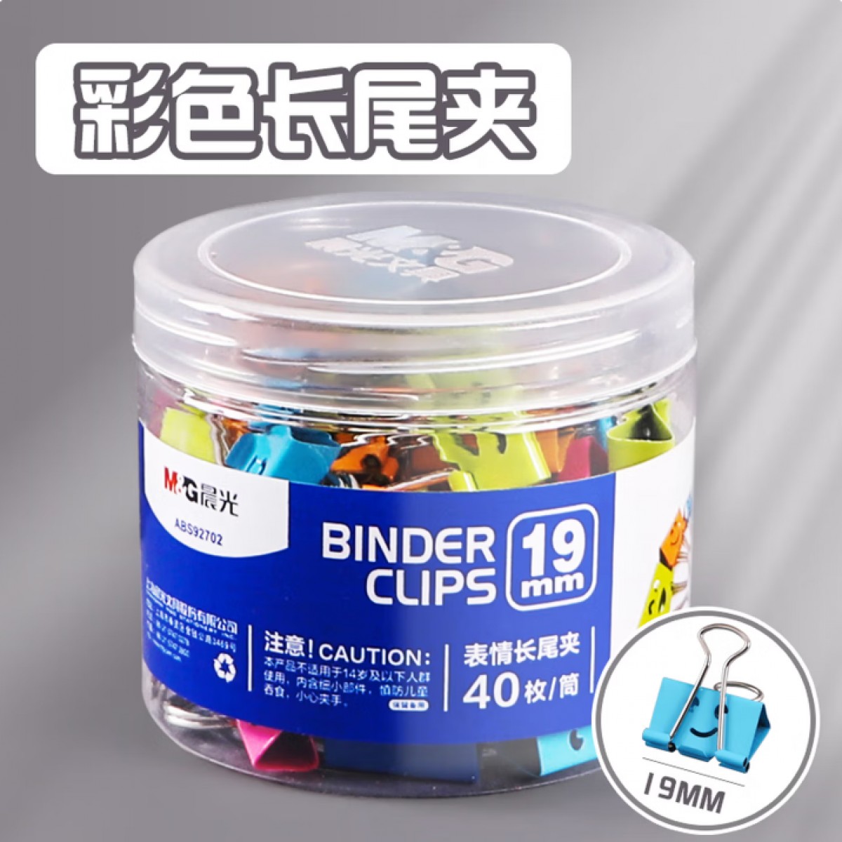 商品名称:晨光ABS92702微笑表情长尾夹5# 19mm 40个/筒 单位:筒
